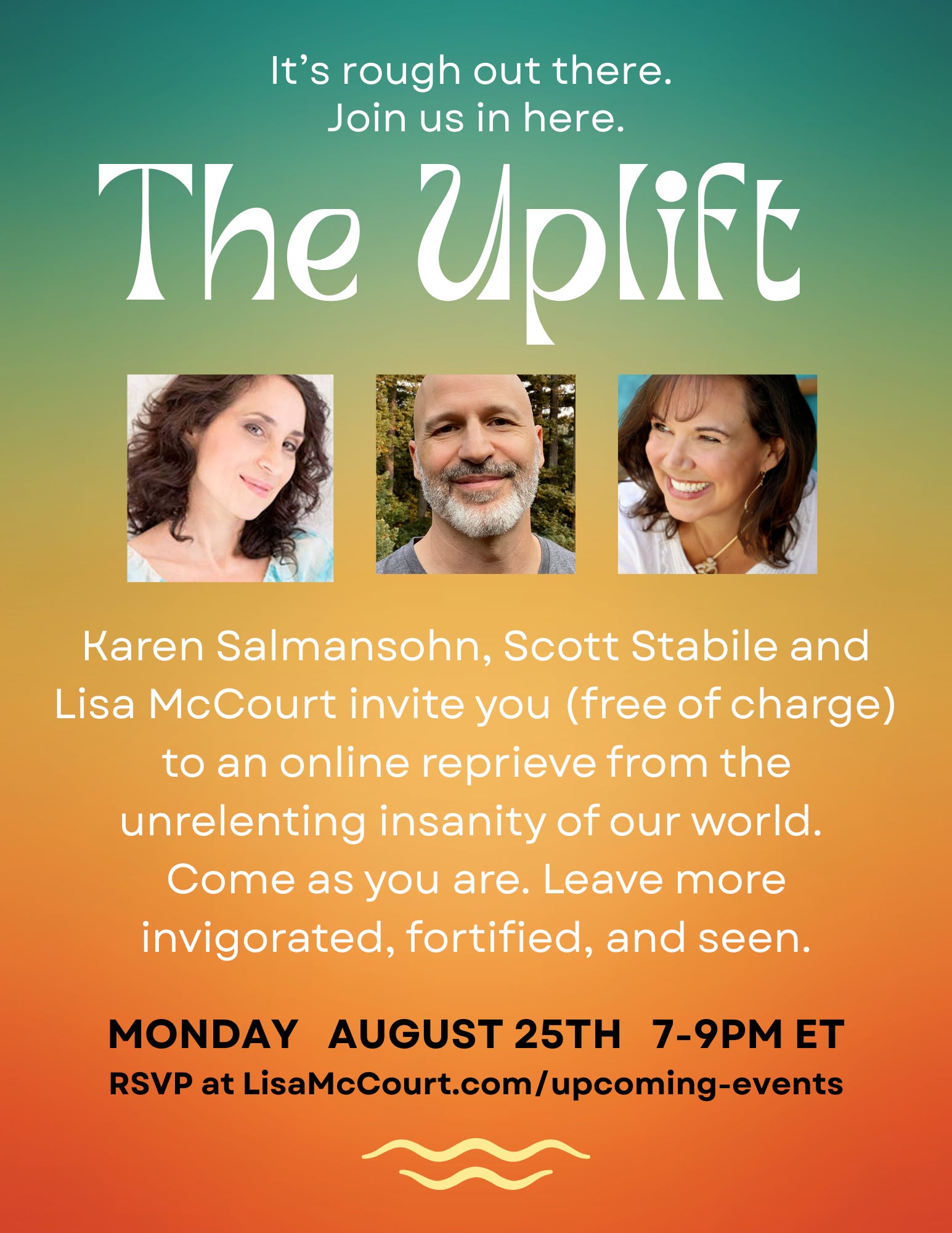 The Uplift, a free gathering on Monday, August 25th, to unwind, connect and (hopefully) feel a bit more invigorated, uplifted and seen.